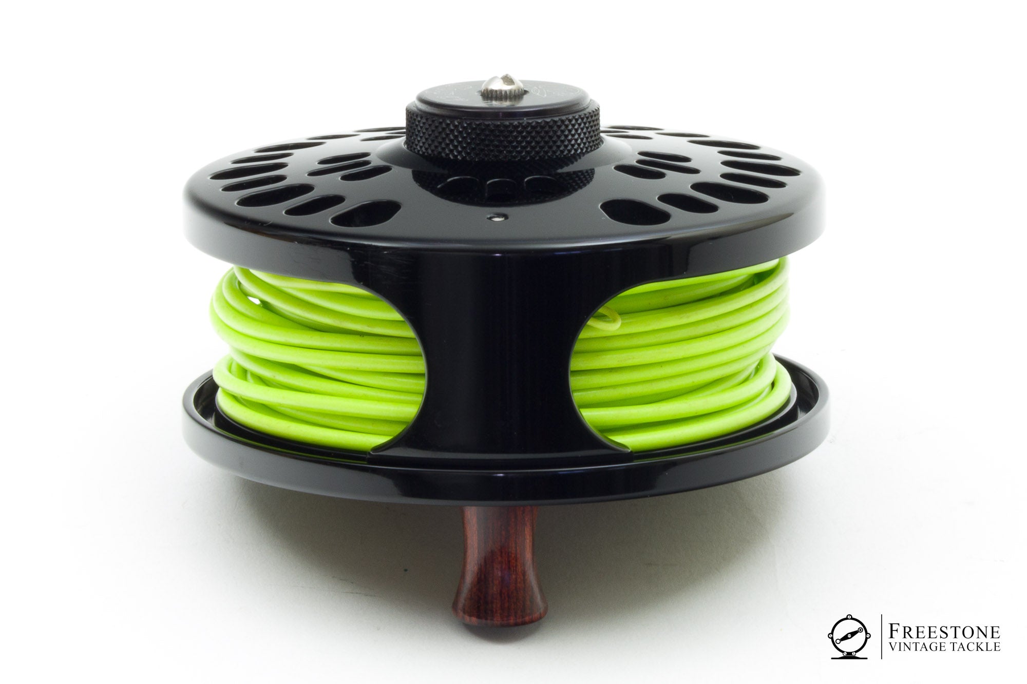 For sale here is an Abel Super 7 fly reel in excellent used condition. Jet black finish, fully ported frame & spool with palming rim. Set up LHW but easily converts to RHW. Strong cork drag with easy adjustment knob. 3.75" diameter with a spool width of 0.95", capacity for a WF7+200. It comes loaded with a 425gr Rio shooting head with running line and backing. A few micro-nicks to the rim, otherwise excellent. Sold in the original box with pouch and papers.