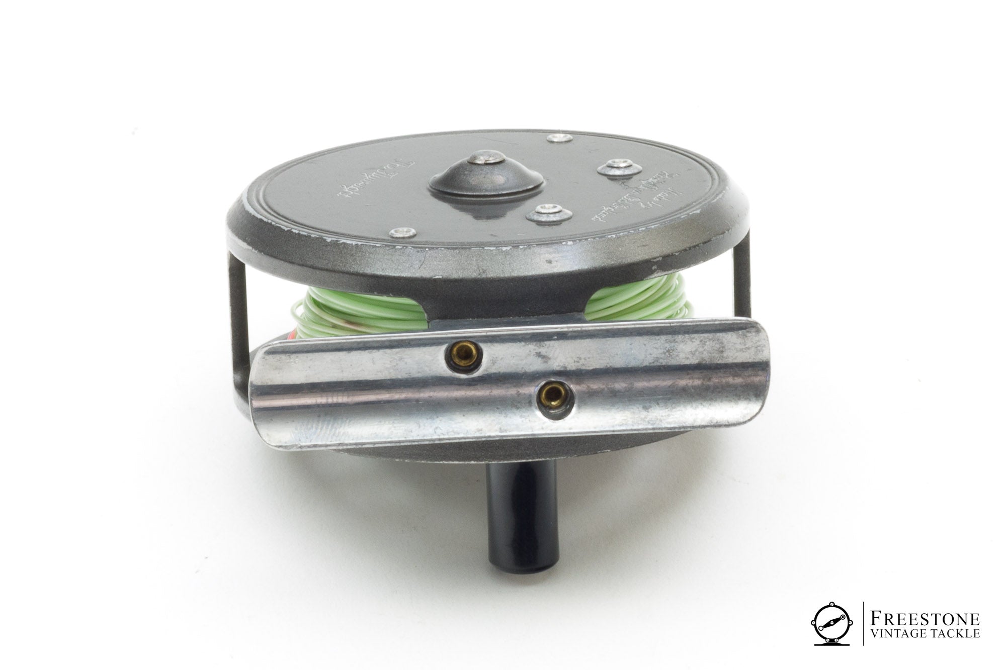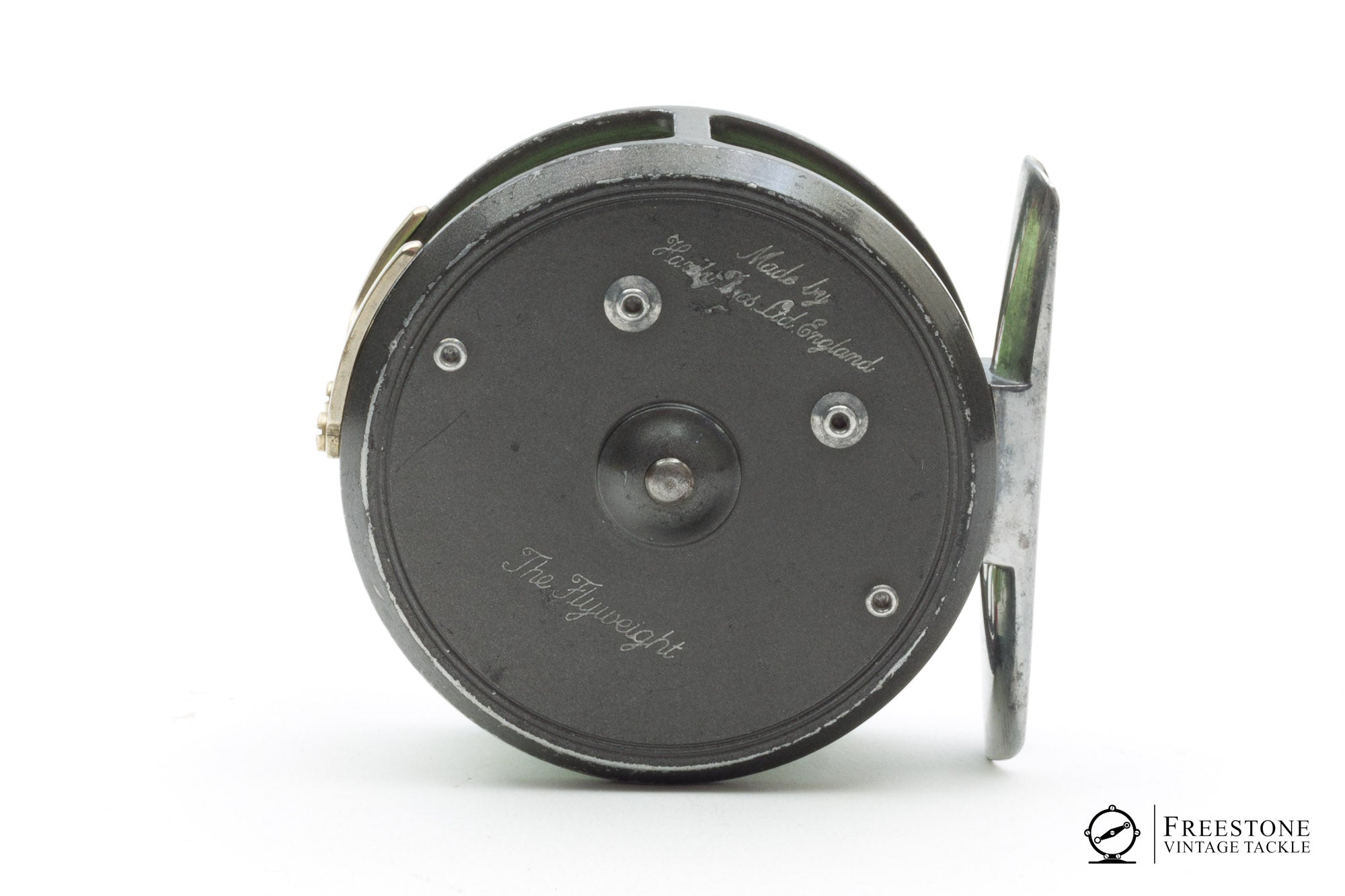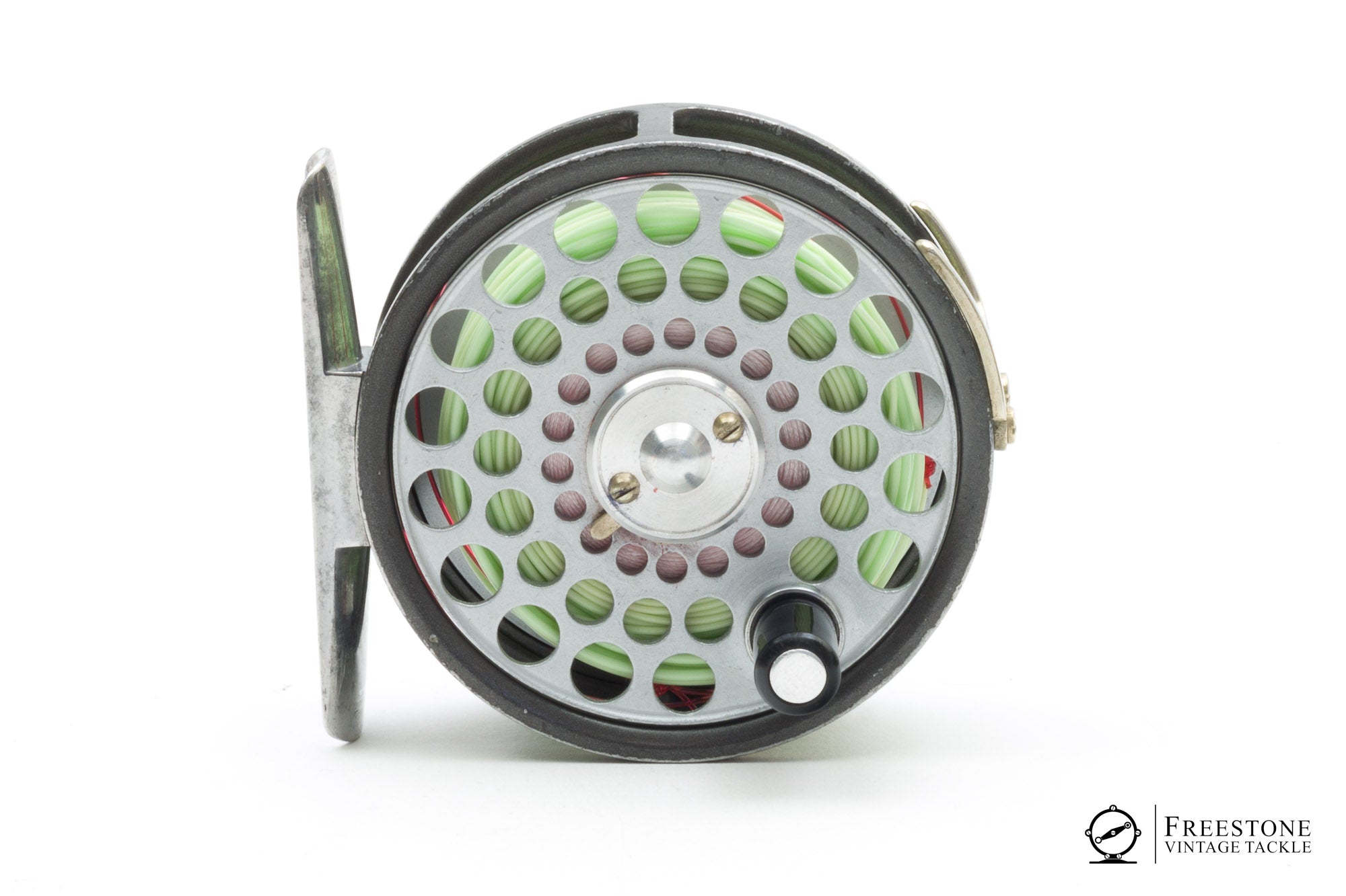 For sale here is a Hardy Flyweight fly reel in very good used condition. 2-screw nickel silver line guard is set up RHW but the reel easily converts to LHW. Lightweight design with ported spool, smooth alloy foot and fixed check. The reel shows signs of honest use but remains mechanically perfect with a crisp check. Weight is 3.14oz loaded with line and backing. A nice size reel for 2/3wt fishing. Sold in the original blue clamshell case with papers.