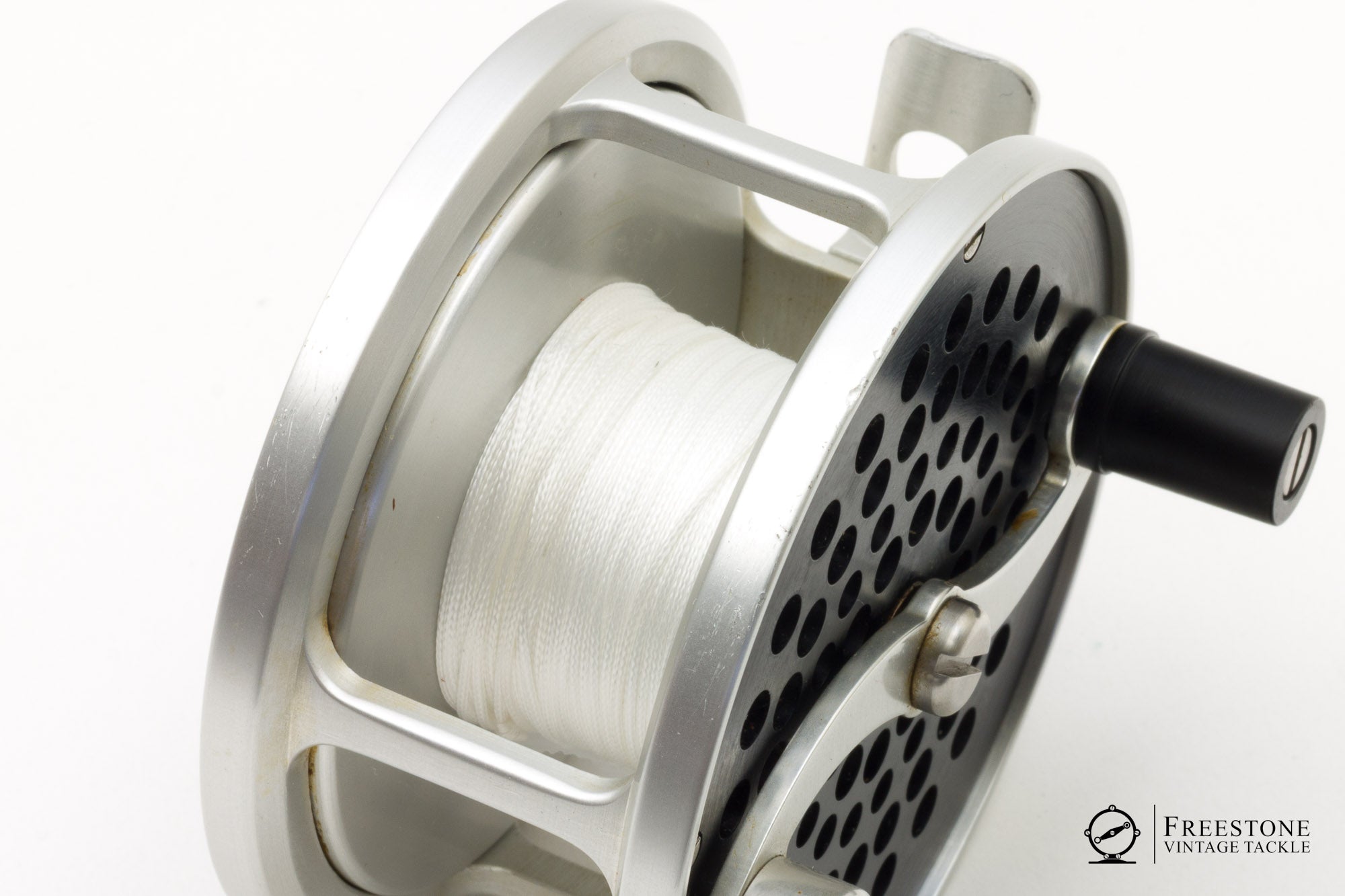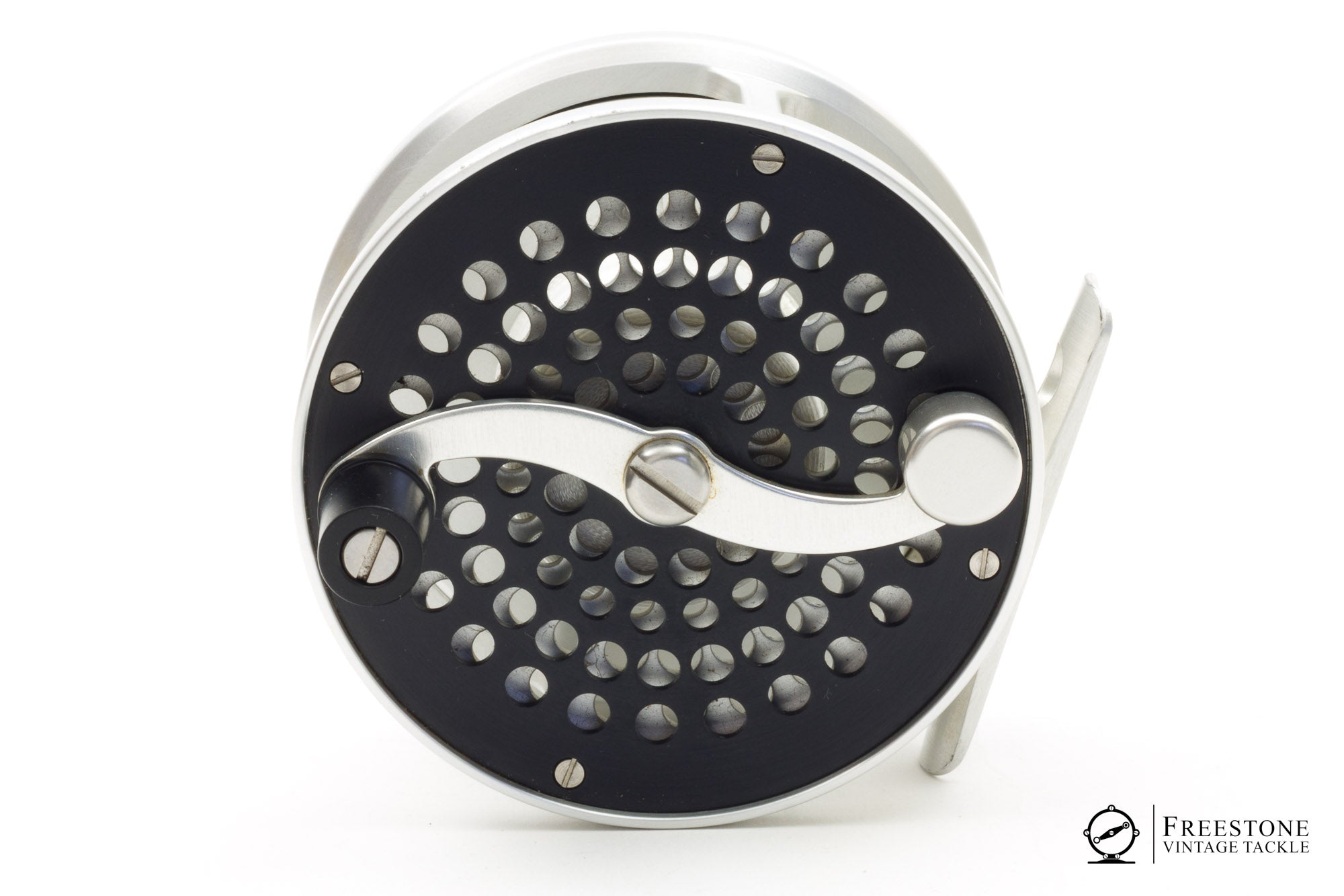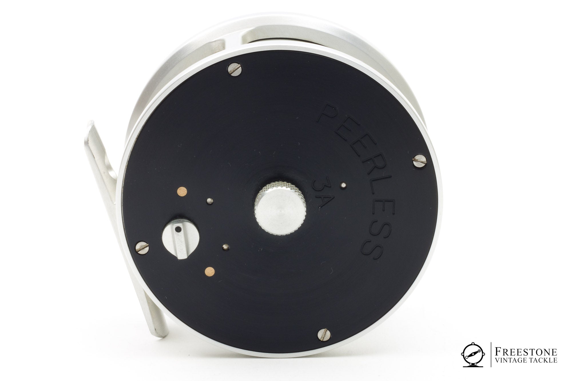 For sale here is a Peerless 3A reel in excellent used condition. 3 1/4" diameter with a spool width of 1 5/8" and 5.47oz weight. Counterbalanced S-handle with ventilated reel foot and adjustable click and pawl drag. Mechanically perfect with some nicks/scratches to the rims from honest use. Capacity is for a WF7+150. Sold in the original Peerless logo zippered pouch.