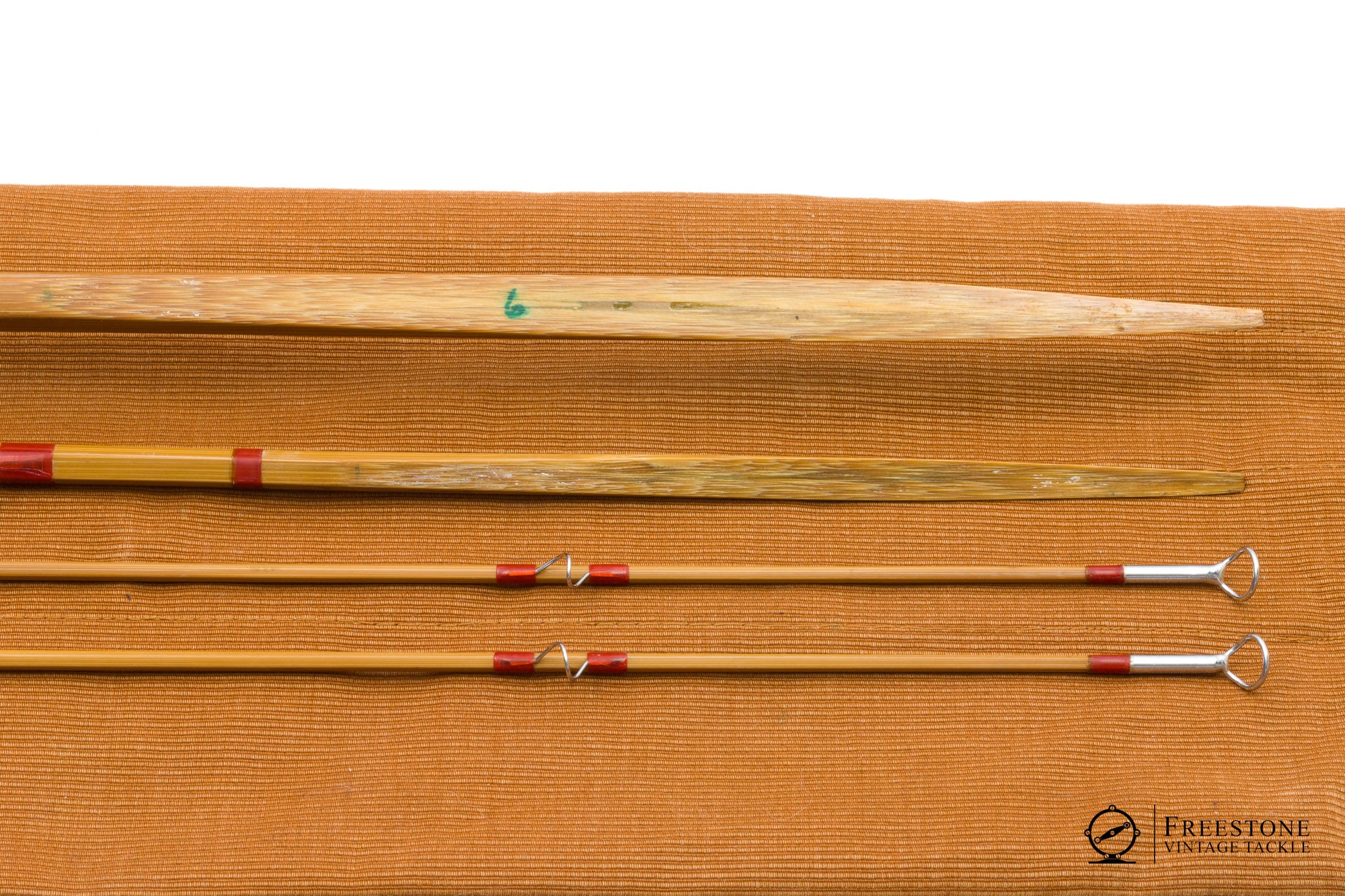 For sale here is a Bob Clay (Riverwatch) "Dean's Kispiox" 11' 3/2 hollow built bamboo spey rod. Excellent used condition, this is a 5-strip rod with spliced joints, rated for 6/7 line. All sections are straight and full length, and the splices have some tape residue under the splice protectors. Cork grip is smooth with light soiling fore & aft, and the rod has Bob's down-locking aluminum reel seat hardware with stamping on the collar. Weight is 10oz on the nose. The rod shows signs of honest use but remains in very nice condition. Sold in the original bag and tube. A beautiful 2-hander from perhaps the most well-regarded maker of bamboo spey rods.
