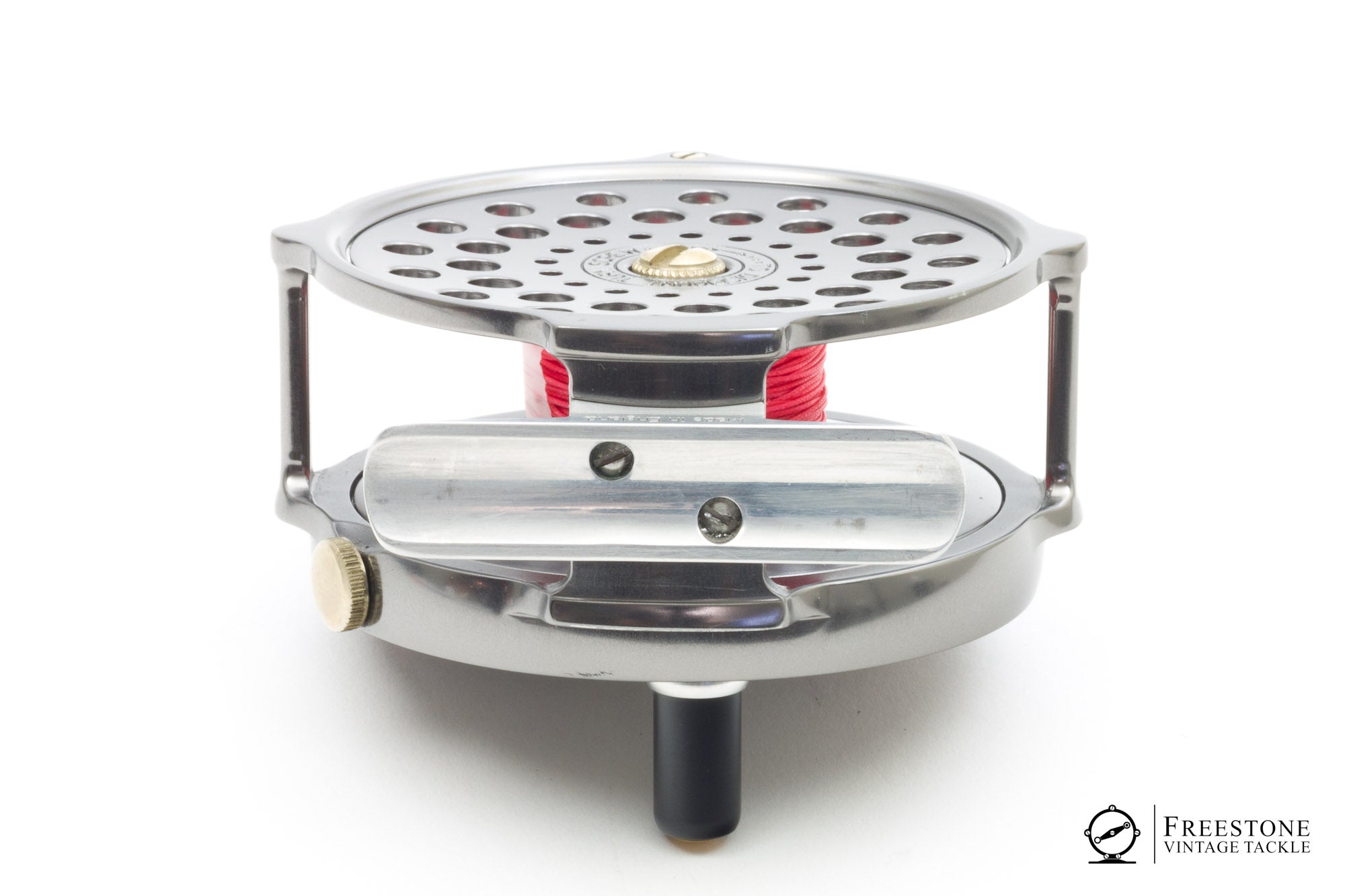 For sale here is a 3 1/4" Hardy Bougle fly reel in excellent condition. This is a recent production "Heritage Series" reel, made in England. Set up for LHW but easily converts to RHW. Dark, gunmetal anodized finish with alloy foot and nickel silver spool retaining screw. Tensioner works as intended with strong check throughout its range. Minor mounting marks to the foot and someone filled in most of the script on the winding plate with some kind of red paint. Hardy rates the 3 1/4" for a 4wt, but it will easily handle a 5wt line.