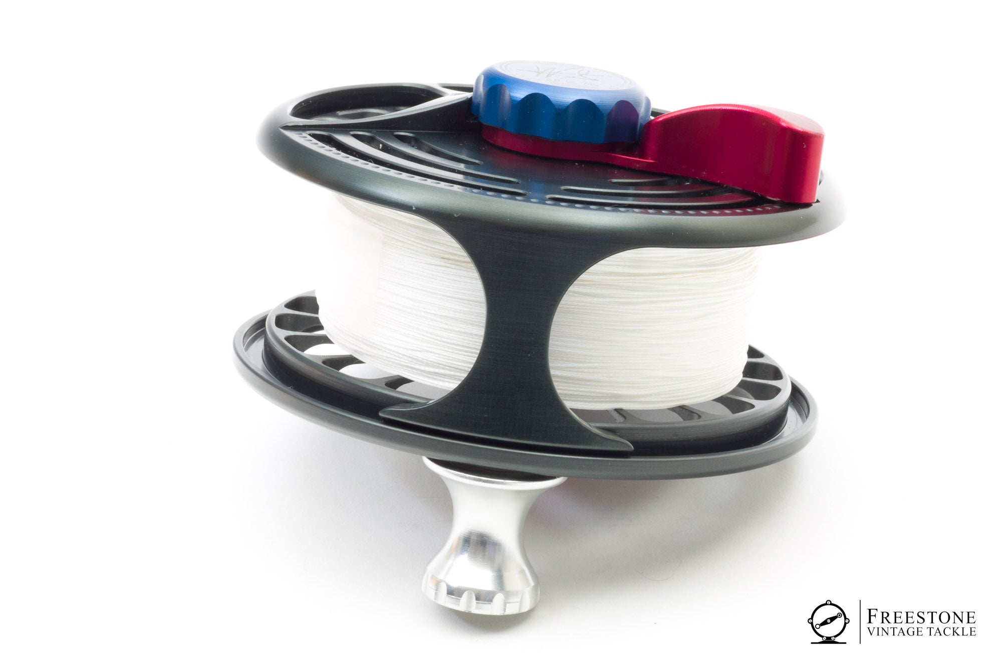 For sale here is a Seigler MF fly reel in near mint condition. Loaded with backing but it can't have seen much use. Gunmetal gray finish with blue/red drag knob and lever. Saltwater-ready drag system, resistance is adjusted by the drag knob and fine-tuned with Seigler's signature lever design. Weight is 12.2oz loaded with backing. A 9/10/11wt reel, official capacity is for a WF10 + 400yds of 50lb braid. Innovative design from Virginia-based reel maker Seigler, ready for service. Sold in the original wooden box with pouch and papers.