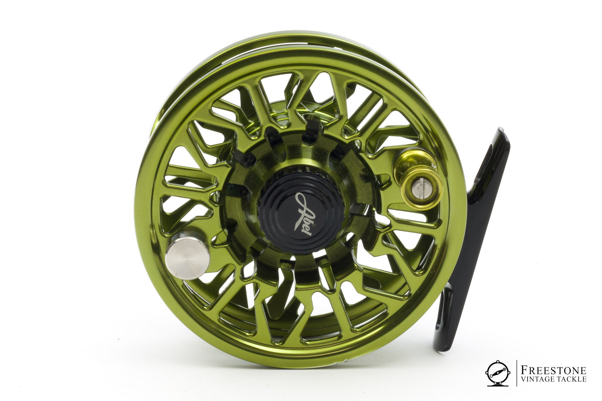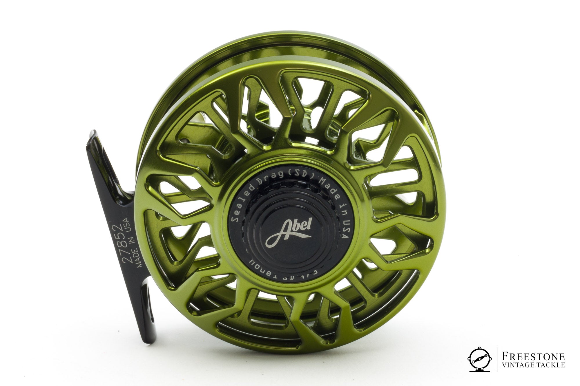 For sale here is an Abel SD 4/5 fly reel in excellent used condition. Green anodized frame & spool with matching handle grasp. RHW. Skeletal design, the reel weighs 5.54oz. Strong sealed drag with easy adjustment knob. 3.25" diameter with a spool width of 0.70". One small ding to the edge of the spool, otherwise the reel is in fantastic shape. Sold in the original pouch.