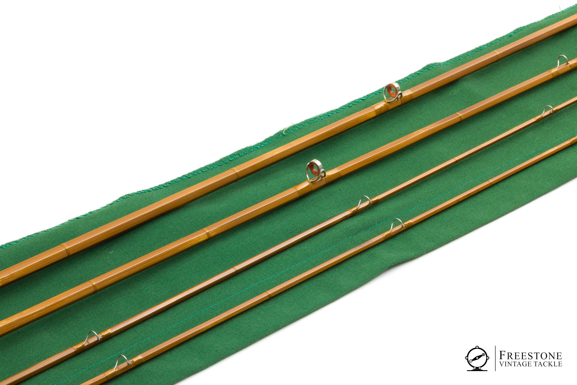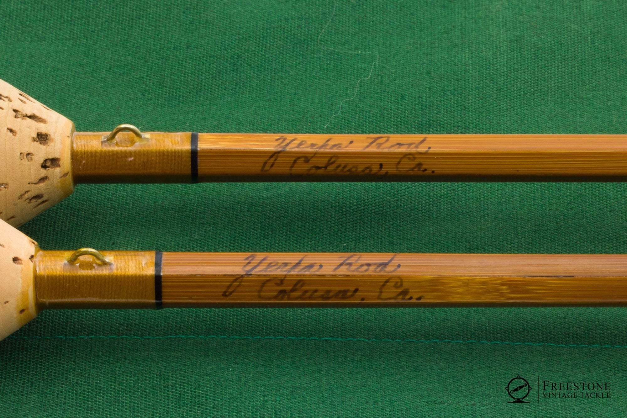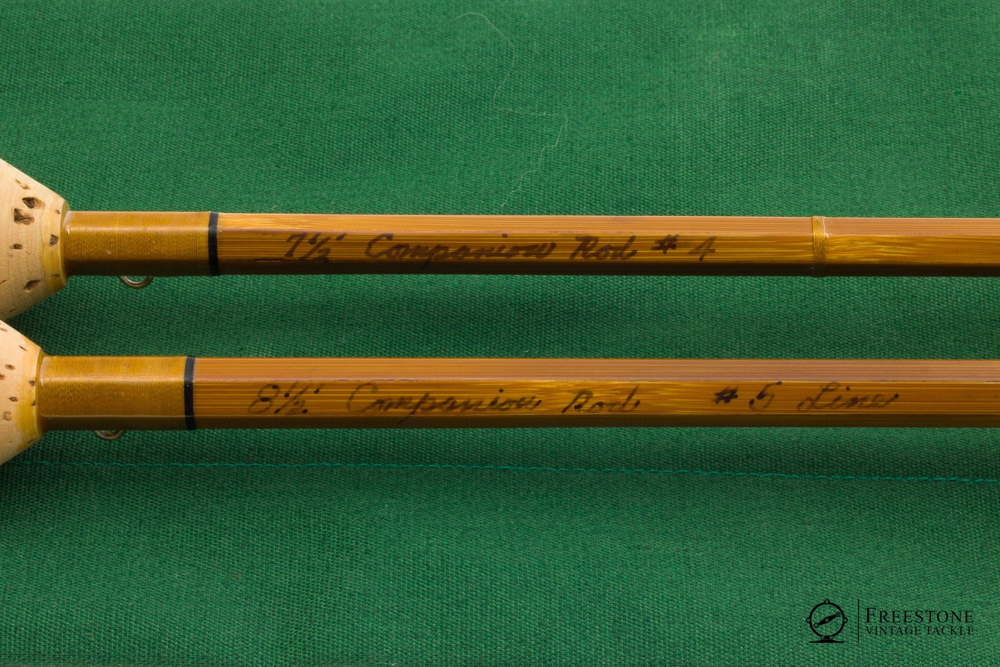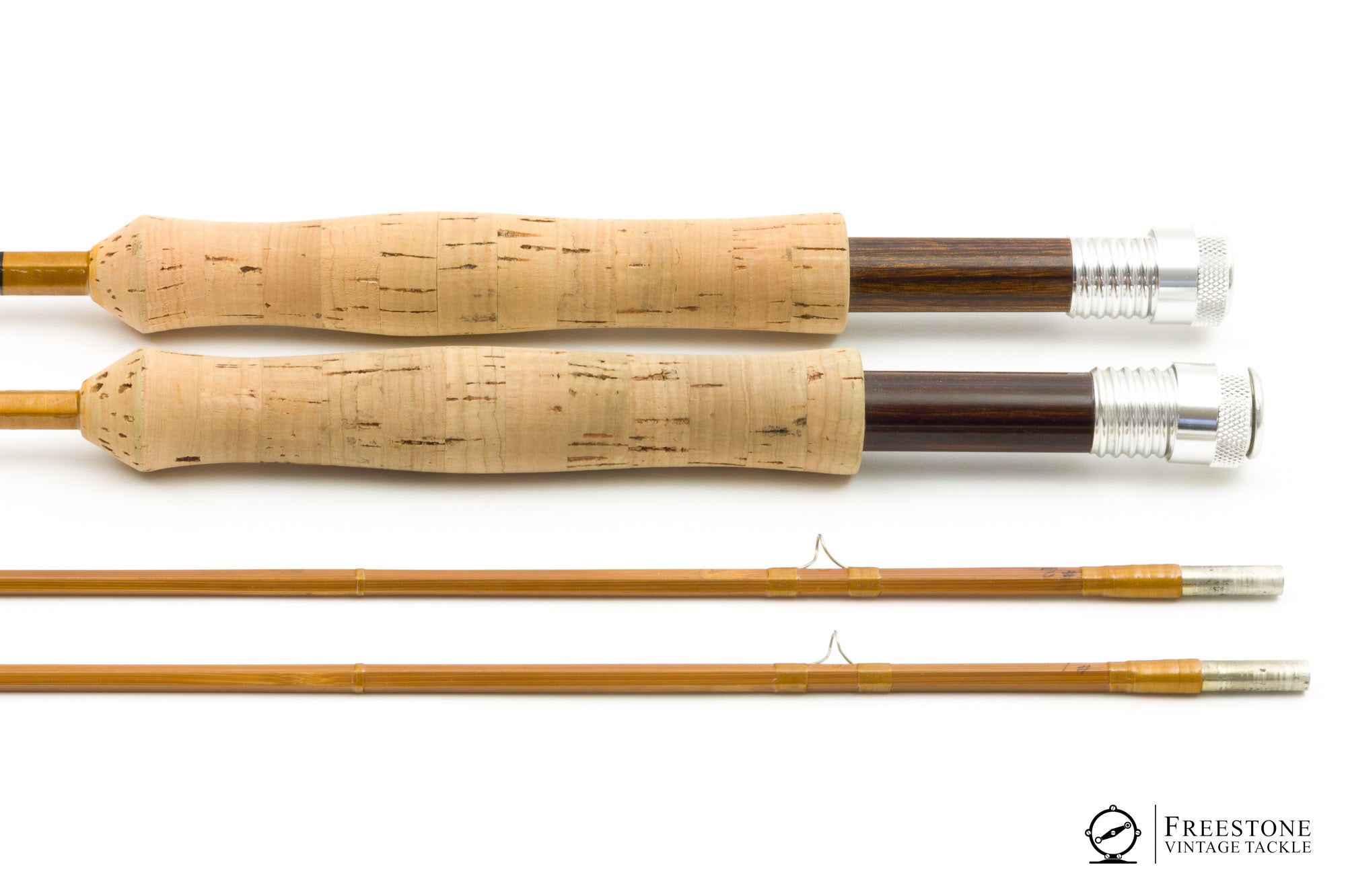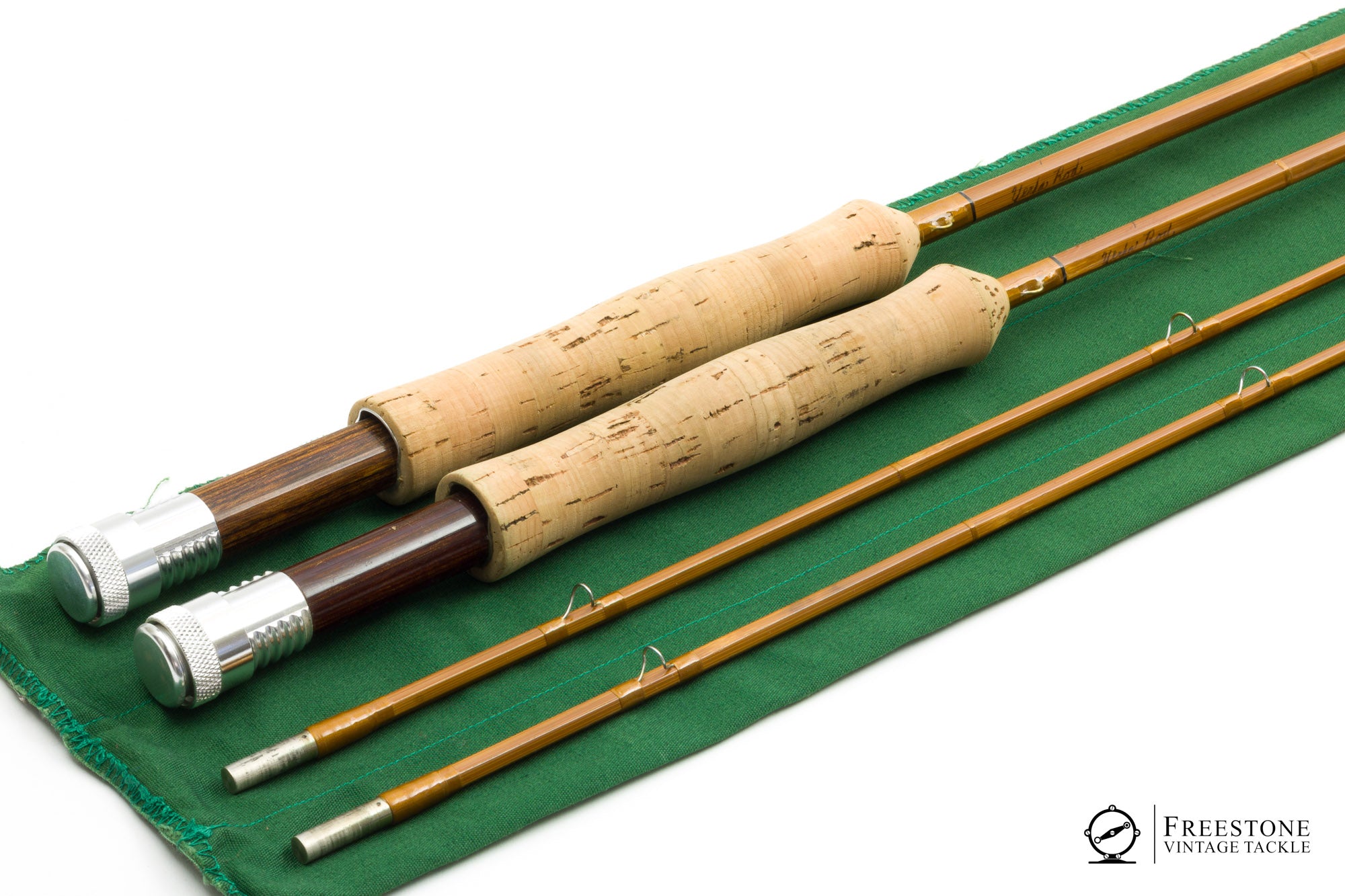 For sale here is a Max Yerxa companion rod in excellent+ condition. 2 butts and 2 tips, one butt section makes a 7'6" 4wt and the other makes an 8'6" 5wt (both tips are identical). Bright guides and gold wraps, red agate stripping guides and bright ferrules. Ferrules fit perfectly and all sections are straight & full length. Cork grips are smooth and bright, and the rods are fitted with up-locking aluminum reel seats over dark wood spacers. The 7'6" weighs 3.92oz and the 8'6" is 4.44oz. Both configurations are true to weight, and they both have progressive tapers on the medium side of medium fast. Two nice trout rods in one package! Sold in the original 3-compartment bag and aluminum tube.